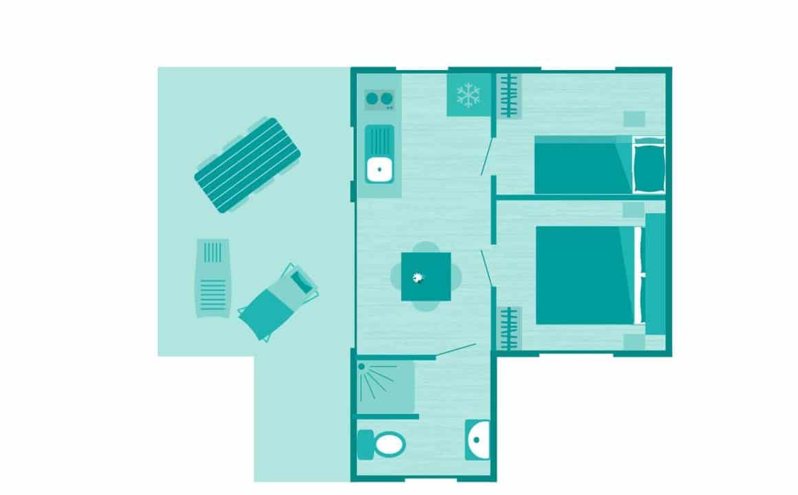 Lodge tent | 4 pers – 2 bedrooms – 1 bathroom | 3 flowers
